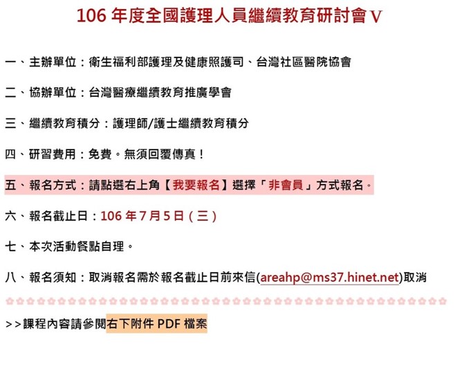 活動名稱:7/14【視訊-臺北醫學大學附設醫院】106年度全國護理人員繼續教育研討會Ⅴ